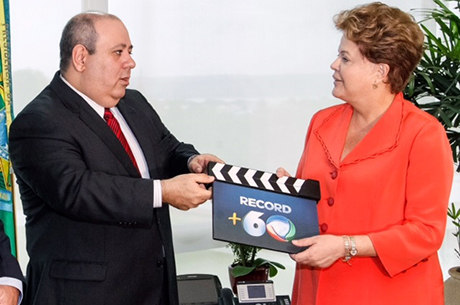 Trata-se de uma claquete comemorativa de 60 anos do canal, que é considerado a emissora mais antiga do Brasil em operação. O presidente da Record, ao entregar a placa, fez questão de ressaltar que Dilma também faz parte da história da Record:
